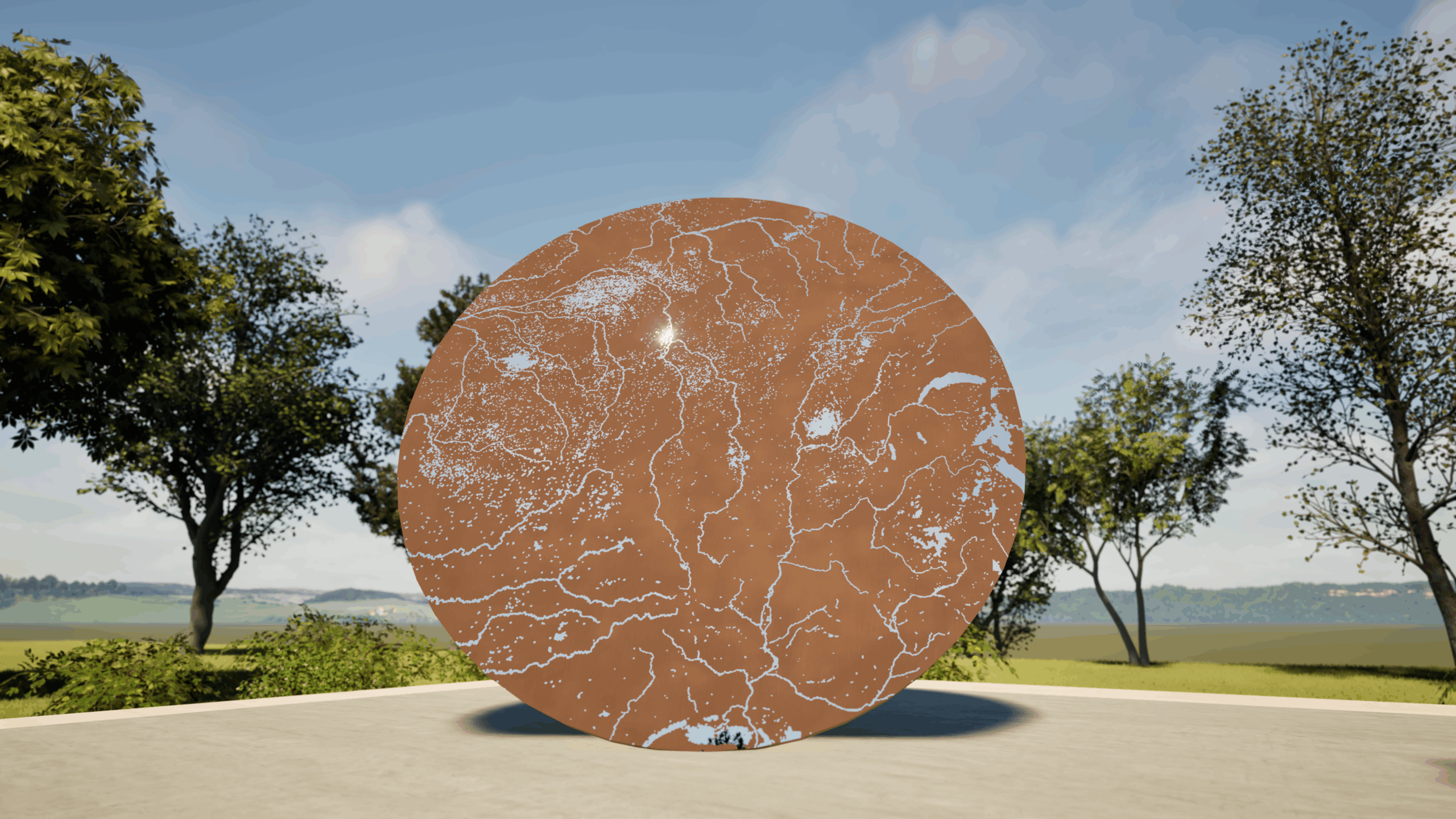 Oeuvre en cours de production, livraison 2023 (découpe Inox poli miroir) Maquette 3D :