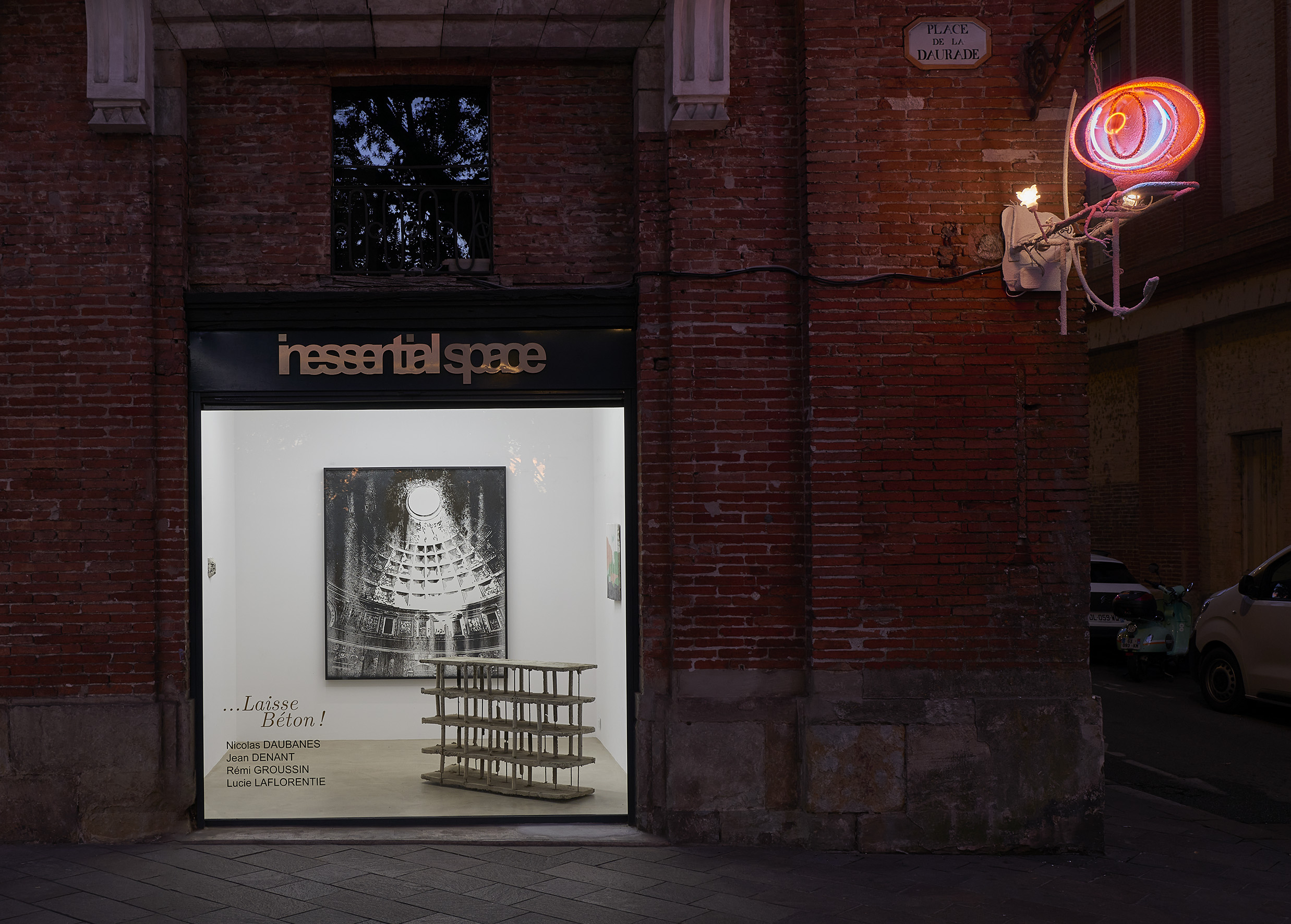 Pour célébrer l'ouverture d'un lieu nouveau à Toulouse : Inessential Space, l'artiste toulousain Damien Aspe a eu la remarquable idée de réunir quatre artistes qui ont pour particularité de s'être rencontrés aux Beaux-Arts de Toulouse ou de Perpignan et dans des lieux essentiels à l'art, comme Lieu Commun et La Maison Salvan. De leurs amitiés partagées est née l'exposition "Laisse Béton". Le commissaire a donc réuni Nicolas Daubanes, Jean Denant, Rémi Groussin et Lucie Laflorentie, chaque artiste ayant créé une œuvre nouvelle pour cette occasion. Le titre de cette exposition est à lui seul un manifeste : il dit la volonté d'affirmer avec un humour corrosif cet art que d'aucuns ont voulu rendre inessentiel en un temps de pandémie et il répond à l'intention de faire de matériaux dévalorisés les sources de leur art. Le béton et le néon engendreront un autre regard sur le monde, l'architecture, bref, sur la vie.